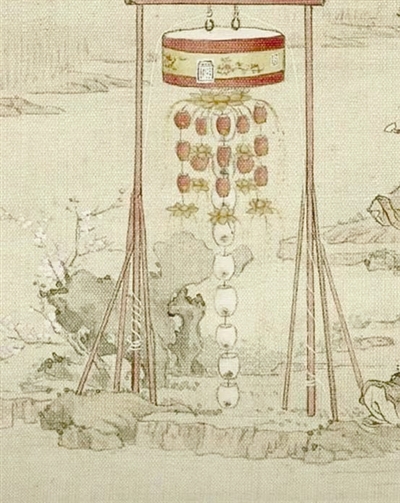 它的原理是什么呢?是中间一个圆筒,拿绢糊的圆筒子,也许拿毛头纸糊,总之中间必须有个圆筒子。圆筒周围画有一圈人。你画个马不就走马灯嘛,实际画马的还少,都是(画)人的多。