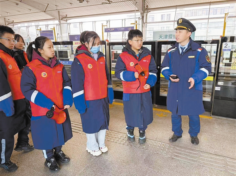 昨日上午,天津轨道交通运营集团在地铁9号线二号桥站开展“学雷锋”志愿服务月“青春出列 志愿同行”主题活动。河东区友爱道小学的30名师生代表走进二号桥站研学体验馆,依次在理论学习区、客服中心实操区、安检实操区、活地图打卡区、自动售票机操作区、闸机操作区六大功能区域开展沉浸式研学。在工作人员细致讲解下,同学们学习安全乘车、文明出行等知识,亲身体验客服问询、安检流程、自助购票、闸机进出站等环节,在趣味互动中了解地铁运营服务流程,感受轨道交通文化魅力。