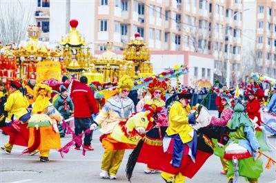 中午12点,庄重的挂号仪式正式开始,门幡老会首先步入会场,幡旗迎风猎猎,上书“风调雨顺”“国泰民安”的金字在阳光下熠熠生辉。紧随其后,24道耍乐会依次登场,轮番献艺:高跷矫健灵动、翻转腾挪尽显功底;竹马活泼俏皮、扮相生动传神;旱船摇曳多姿、妙趣横生;龙灯腾跃飞舞、气势磅礴;少林狮子会、圣喜乐娃娃会等民俗表演各具特色,过场有序、撂场精彩,铿锵锣鼓与阵阵喝彩声交织,汇成一片喜庆欢腾的海洋。