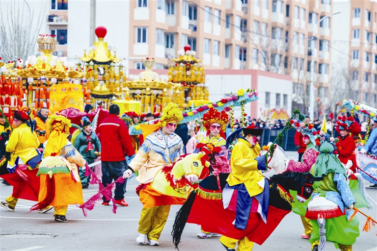 3月4日,正月十六,津南区葛沽镇安正道上锣鼓喧天、人声鼎沸。传承六百余年的国家级非物质文化遗产代表性项目“妈祖祭典(葛沽宝辇会)”热闹上演。本次宝辇会以全新阵容、传统仪制、全民参与的盛景,再现百年民俗的恢宏气象。