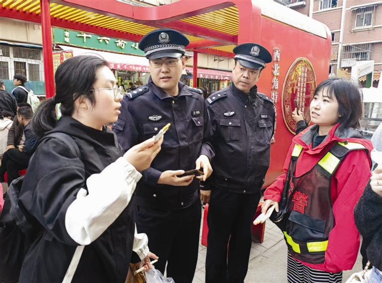 都说“每逢过节胖三斤”,而任翠蓉和她的同事们这个春节又瘦一圈儿。因为他们是“网红打卡地”西北角的“大忙人”。现在春节已过,但西北角的热闹是持续性的。店家忙着做,游客忙着吃,任翠蓉和同事们忙着协调各种事:日常巡视、安全防范、环境卫生、应急处理,还有社区平日的走访解困、节庆活动、助老护小……
