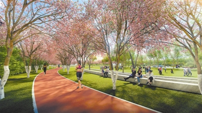 “金棠公园项目旨在以高品质公园建设,夯实区域生态基底,激活城市活力,塑造以公园为核心的东丽新区城市风貌。”东丽区城市管理委员会市容园林科科室负责人刘骏越表示,金棠公园设计以海棠为植物特色,定位自然嵌入型城市共享空间,融合居民游憩、休闲、健身、社交等复合功能。整体以海棠健身步道环为骨架,串联阳光草坪、露营空间、儿童自然探索区、休憩交流区、半篮球场及公园服务配套,设置四向城市入口与形象标识,形成功能完整、动线清晰的空间结构。