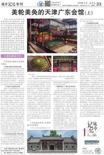天津,作为近代中国北方重要的通商口岸与移民城市,其建筑文化呈现出鲜明的多元融合特征。19世纪末至20世纪30年代,中国近代建筑处于转型关键期,西方建筑理念的输入与传统建筑的持续发展在此交汇。1907年落成的天津广东会馆正是这一特殊历史时期的建筑。它不仅是我国现存规模最大、保存最完好的中国古典式会馆建筑,也是天津近代建筑文化的重要代表,其独特的建筑风格、精巧的功能设计及深厚的历史背景,体现了天津作为南北交融、中西荟萃的港口城市所特有的建筑文化特征。