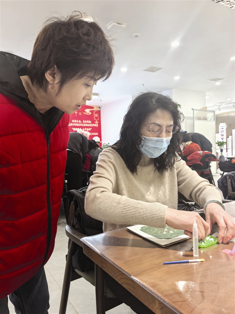 近日,和平区南市街道新文化花园社区党群服务中心,一楼的长桌旁围着十多个人,大家手里拿着珠子、钳子,低头穿项链。桌上摆着针线盒、剪刀,还有几本翻开的复古饰品图册。这是社区组织的手作复古项链活动。