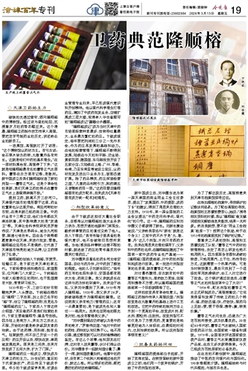 提到卫药,就离不开三岔河口。天津现代城市的雏形源于这里,药业的繁荣也从这里开始。南运河畔的针市街,在清末就已经药商云集。中药行业有十三帮之说,他们当年都在天津活跃着,其中影响最大的是“京通卫”帮。天津社会科学院研究员罗澍伟说:“天津是水旱码头,地当九河经要,路通七省舟车。因此各个商帮都愿意集中在天津,来进行批发、零售。隆顺榕应运而生不是偶然,它代表了天津城市响亮的地方品牌,让卫药得到了弘扬。”