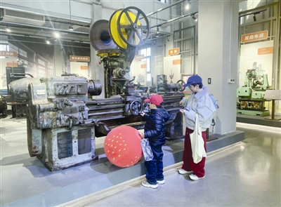 走进博物馆展区,这里集中展示了机床发展历程与天津的工业记忆。今年70岁的田宝来站在一台冲床前,认真阅读设备介绍。他说,自己以前是电机修理工,看到这些老旧机械设备觉得格外亲切,不禁想起年轻时工作的场景。