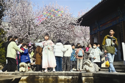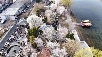 “今天下午只有两节课,我们几个同学一起来拍照,周末听说人特多,怎么拍都是‘大合照’,这会儿天晴人又少,太适合拍照了。”大二学生林思诺在桃花堤河岸边取景,几个同学一起互相参考摆POSE,“前两天阴天,感觉拍不出效果,今天拍了几张,阳光足拍出来都像大片。”