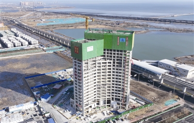 从中新天津生态城获悉,作为绿创园的首栋建筑,绿创中心项目已于日前完成结构封顶,进入外立面与机电施工阶段,计划2027年竣工投用。