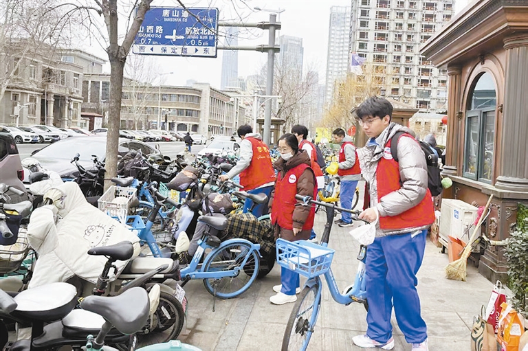 同学们在社区开展了多项服务。在长春道社区,同学们在社区负责人的带领下为辖区退役军人送去暖心问候。学生们耐心指导大家使用血压仪等设备,也听到感人的军旅故事,激发了爱国热情。来到大同道社区的同学们深入楼道、绿化带、停车死角,对长期无人使用、乱停乱放的废旧及闲置自行车逐一排查、搬运,规范停放至指定位置,在劳动中体会着社区工作者的辛苦。津塔党群服务中心的工作人员带领高中生们清扫公共区域卫生,清除环境杂物,保障区域整洁和通行秩序。