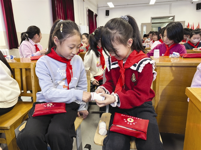 “看一百遍,不如自己动手做一遍。”吴琼说,从小给孩子种下安全意识,教会自救互救本领,比什么都重要。体验结束,她笑着询问:“下次我再来上课,你们愿意吗?”“愿意!”孩子们齐声回答,声音响亮又真诚。