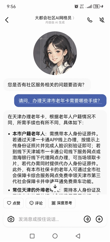转机始于一场智慧化升级。社区依托“豆包”平台,开发出1.0版AI网格员服务体系。它不仅能通过语音、文字等方式,即时解答各类政策咨询,还能听懂“吐槽”。针对老年人群体,AI网格员内置了智能陪护功能,可进行简单心理疏导,尤其为独居老人提供了情感陪伴的可能。所有交互数据均加密处理,确保信息安全。