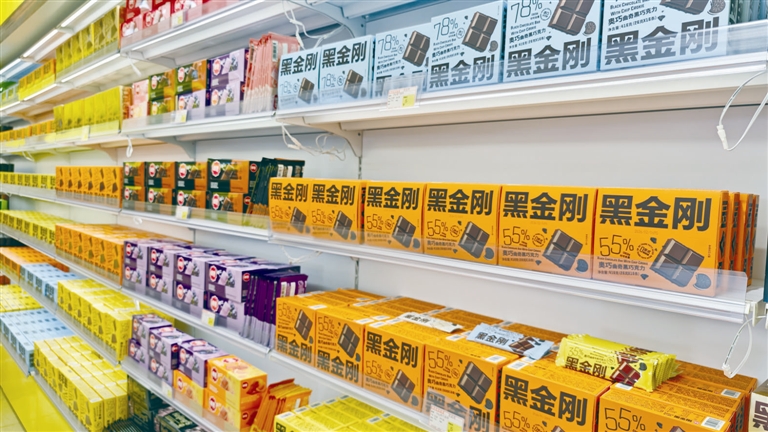 走进黑金刚电商发货车间,打印、包装、封箱、装车各环节行云流水、高效有序。厂区内,等待发运的物流车辆络绎不绝,包装箱上的收货地址覆盖吉林、浙江、四川、贵州等全国多省份。“数据显示,我们线上最大的客源来自广州,那边的消费者对巧克力格外青睐。”程青说。