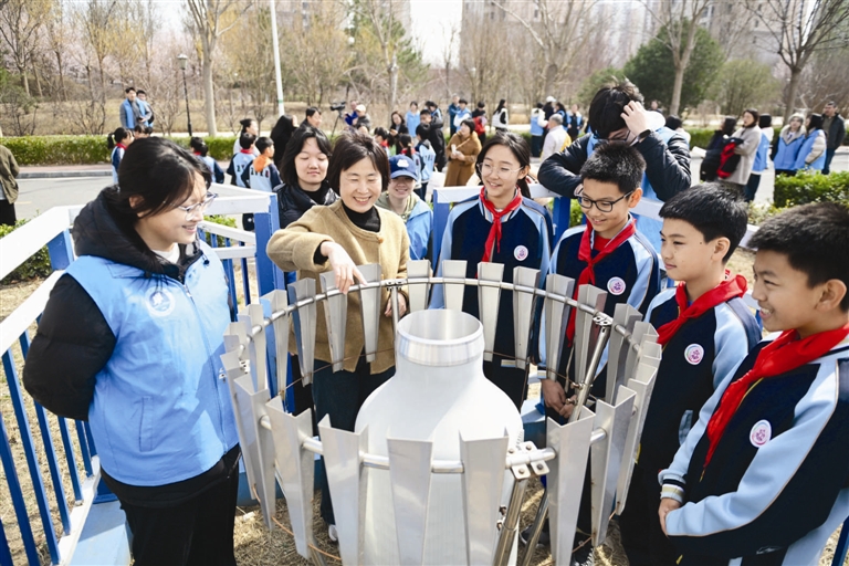 课堂搬到了实践现场。小学生们在大学生志愿者带领下,走进实验室和水情教育基地,实地参观水利模型,参与趣味问答,动手操作小实验。志愿者们用通俗易懂的语言讲解水资源分布、节水小窍门,孩子们听得认真,不时举手提问。 记者 史嵩