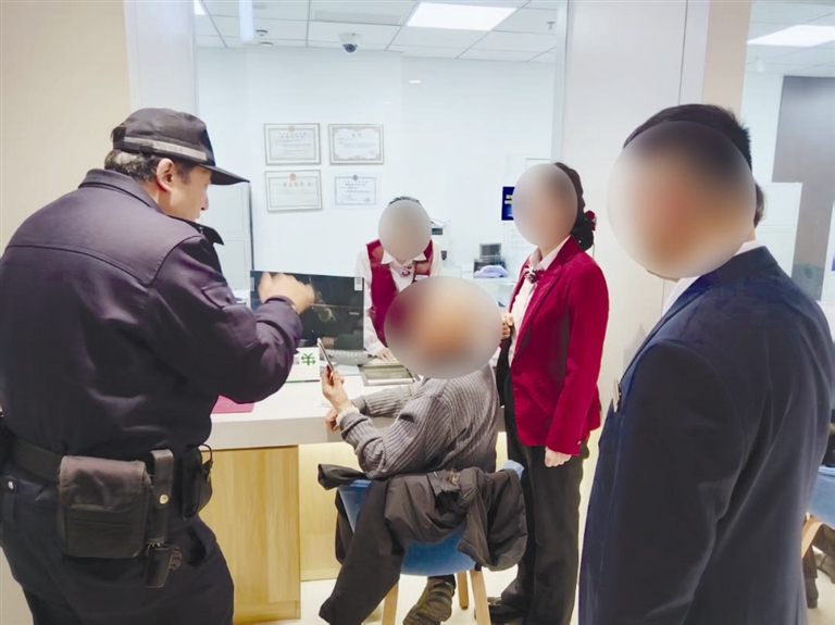 接警后,民警迅速“双线并行”进行处置:一组民警立即拨通老人电话耐心安抚,结合老年人常见诈骗案例,层层拆解骗局套路,戳破诈骗本质;另一组民警则火速驱车赶往老人所在的银行,并实时与银行工作人员沟通对接,掌握最新动态。