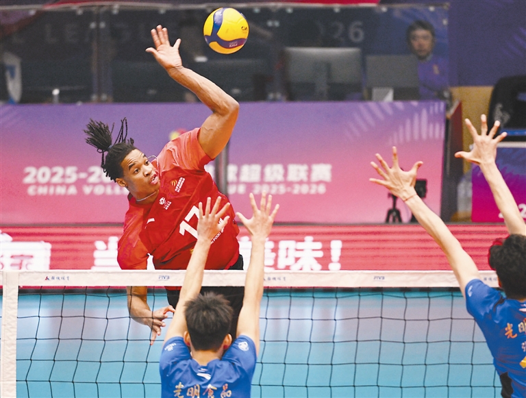 本报讯(记者 谢晨)2025—2026赛季男排超级联赛半决赛昨天展开首回合的较量,天津食品集团男排在主场以3比2(22比25、25比22、22比25、25比23、15比9)逆转卫冕冠军上海男排,占得先机。昨天进行的另一场半决赛首回合争夺中,河北队客场以3比1逆转山东队。3月22日将上演半决赛次回合的争夺,天津男排将赴客场再战上海男排。
