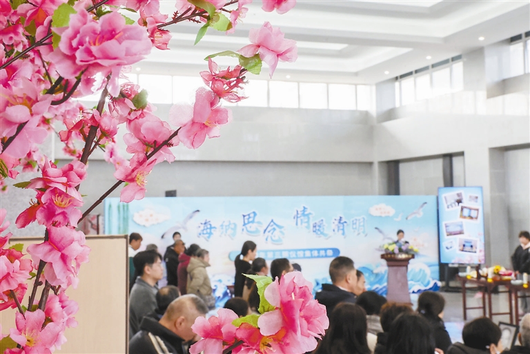上周末,本市迎来首个祭扫高峰,绿色简约的文明祭扫成为主流,全市各殡仪馆陆续开展集体共祭活动,以庄重温情的新方式寄托哀思。 记者 吴迪 摄