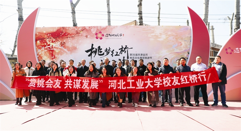 这个春日,伴随第35届天津运河桃花文化商贸旅游节的火热人气,“桃花”不仅成为红桥区文旅消费的新引擎,更搭建起高校与校友、区域与企业双向奔赴的桥梁,让校友在赏桃忆旧中,重温青春岁月,践行初心使命。