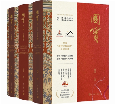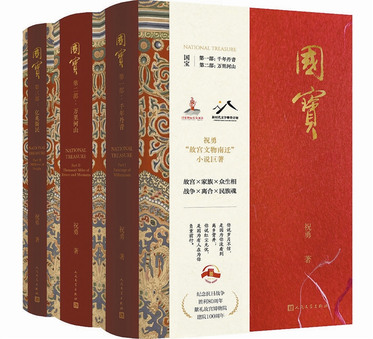 著名作家祝勇所著的《国宝》三部曲包括《千里丹青》《万里河山》《亿兆斯民》,以20世纪30年代为起点,以那文松等故宫人的命运浮沉为主线,真实还原了故宫文物从北平出发,历经南京、上海,最终迁往大西南,而后分隔海峡两岸的艰辛历程。小说通过一个家庭的悲欢离合、聚散流徙,讲述其因南迁而波澜飘摇的家族史,以小见大,从烟火日常的民间立场见证磅礴沧桑的近代中国。