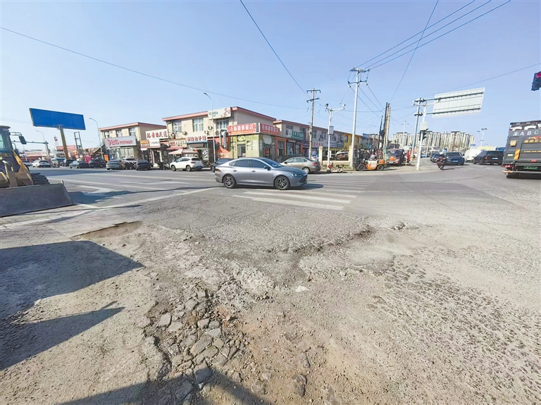 早晚高峰时段,此处大量车辆被迫减速慢行、频繁避让,直接造成路口通行缓慢、拥堵加剧,这一状况已持续一段时间。3月20日下午,记者到实地探访,该处并非单一坑洞,而是连片破损、高低起伏,车辆经过时连续颠簸,即便减速仍易托底剐蹭,不少车主苦不堪言。记者随后将问题反馈至津南区辛庄镇政府。