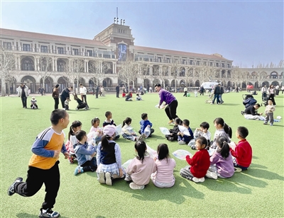 昨日,本市气温攀升,到民园广场休闲游玩的市民络绎不绝。 记者 张磊 摄