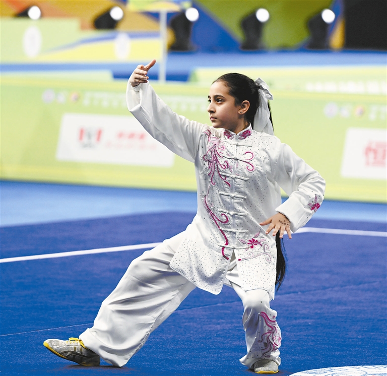 上午进行的男子B组(12岁—14岁)长拳项目角逐中,中国队小将王诚旭凭借沉稳大气的发挥,以8.920分的优异成绩摘得桂冠,为中国代表团夺得首枚金牌。赛场上,王诚旭动作刚猛有力、大开大合,长拳标志性的弓马虚仆歇步型标准规范,跳跃动作腾空舒展、落地稳健,整套动作节奏明快、气势十足,无任何失误与扣分点,完美展现出长拳舒展大方、快速有力的技术特点,以绝对实力征服裁判,拿下首金意义非凡。“拿到首金很激动,场上还是有点紧张。赛前我就想着一定要把动作做稳、做完整、不失误,最后完成得还不错。感谢教练和团队,后面我还有枪术比赛,我会继续努力。”赛后,王诚旭表示。
