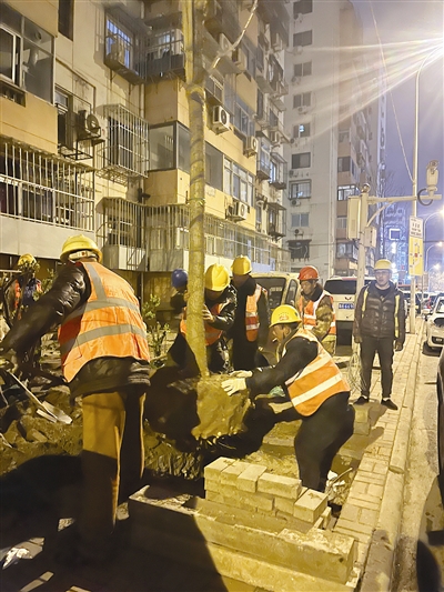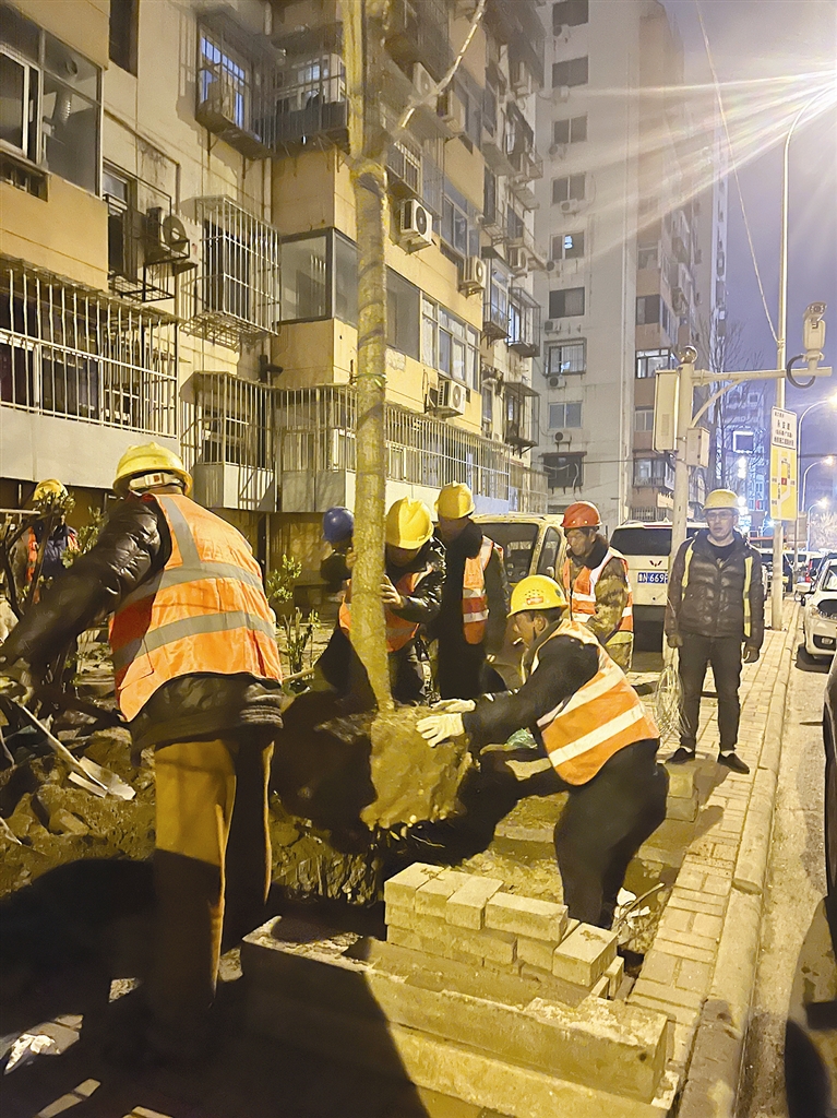 汕头路周边居民区集中,加上临近的永安道上也有施工,为了不影响白天通行,补植补种选在了晚上。从河西区公用事业服务中心园林养护科得知,河西区是从3月初启动补植补种工作,计划对卫津南路、浯南路等30条道路,补植白蜡、法桐等品种的行道树1363株,按照计划,4月中旬将全部完成。