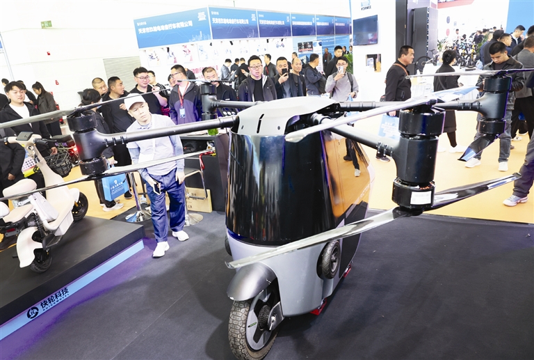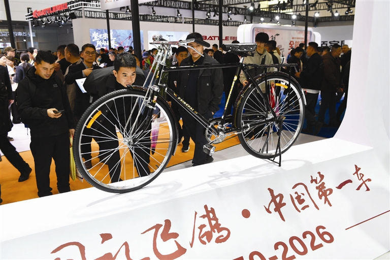 27日,第24届中国北方国际自行车电动车展览会在国家会展中心启幕。展会为期3天,聚焦新国标与智能绿色出行,以场景化、功能化展示为特色,强化品牌互动与观展体验,在促进行业交流合作、推动产业升级的同时,全力营造沉浸式、高品质展会文化氛围。左图为一款会飞行的电动三轮车吸引人们关注,下图为展会现场。