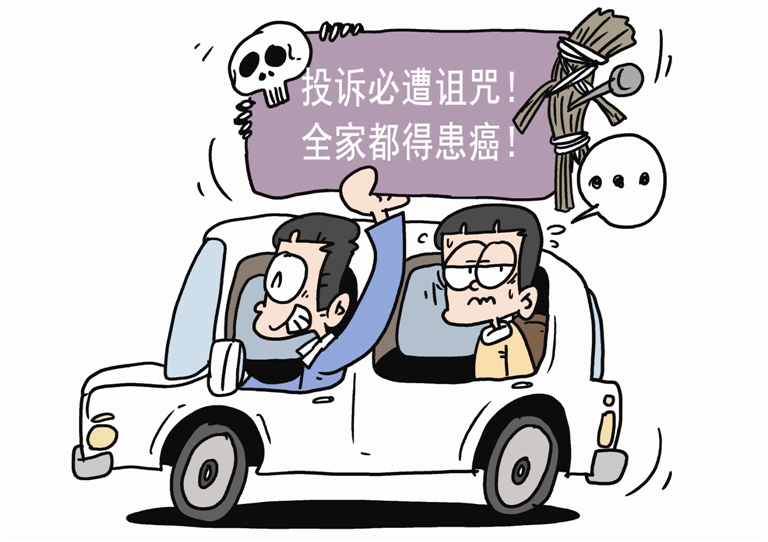 这种做法既蠢又坏。蠢在妄图用恶毒诅咒堵住乘客的嘴,坏在肆意释放恶意戾气。平台若不严惩此类行为,就是变相发通行证。点评 老宋 漫画 张驰