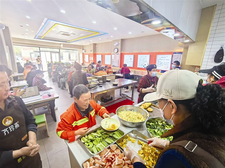 “每天有200多人来这用餐,主要是70岁以上的老人、环卫工人、残疾人,还有家里有特殊困难的人。”婷婷介绍道,“我们餐厅面向社会开放,谁都可以来。附近居民家里有事来不及做饭,也能过来就餐。”