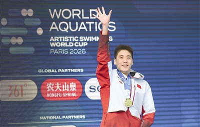 北京时间昨天,2026世界泳联花样游泳世界杯巴黎站结束了男子单人自由自选的决赛,中国17岁小将郭牧也(上图)以259.4950分再次摘得金牌,成功包揽本站男子单人项目两金。新华社发