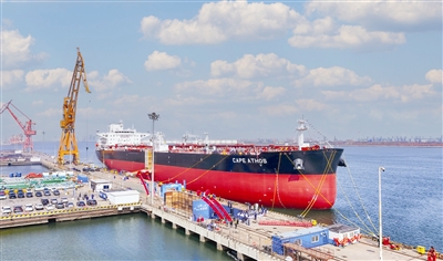 日前,中船大连造船大船天津(以下简称大船天津)为开普航运公司建造的11.5万载重吨成品油船“开普阿托斯”号命名交付。该船总长249.80米,型宽44.00米,型深21.20米,结构吃水15.25米,采用MAN 6G60ME-C10.5 HPSCR型主机,服务航速14.50节,续航力达22000海里,满足Tier Ⅲ排放标准。该船入级ABS船级社,取得多项环保与智能附加符号,体现了绿色、节能、智能的设计理念。