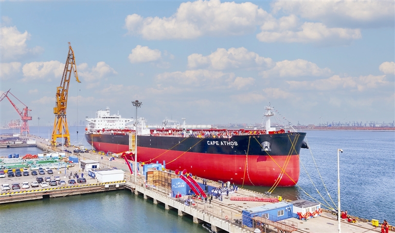 当前,大船天津手持订单饱满,产品覆盖大型集装箱船、散货船、油船等多个船型领域,合计约1000万载重吨。其中,LNG及甲醇双燃料等新能源船舶占比显著,深度契合全球航运绿色低碳转型趋势,生产计划排至2030年。未来,大船天津将坚持品质引领,深耕绿色智能船舶建造,全力保障在手订单高质量交付。