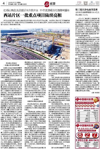 此外,其他的8条道路也逐步开始建设。这11条道路建成后,将会大大改善西站周边交通现状。同时,红桥区还在西站北侧子牙河上规划了一座步行桥梁,连接子牙河北岸与西站北广场,进一步完善西站到周边地块15分钟慢行系统,为市民游客提供更加便捷的出行条件。