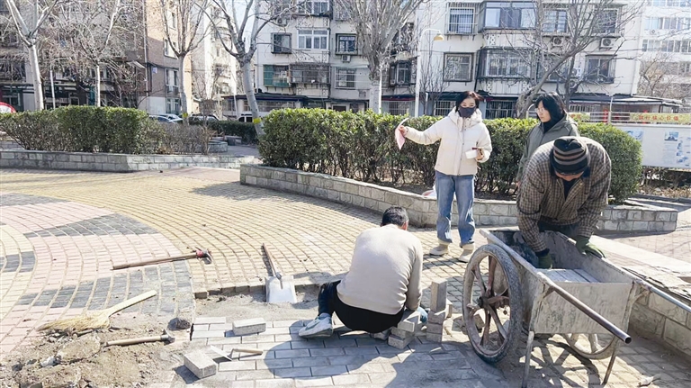 今年春节后,社区将花园修缮列入重点民生事项,通过入户走访等方式征求居民意见,并协调辖区共建单位、物业公司和居民共同参与改造。施工过程中,共建单位和物业公司提供了建材、工具和人力支持,施工人员对破损围栏进行了拆除更换,填平地面坑洼,铺设防滑地砖,安装防腐木座椅,在保留原有绿化的基础上,对花园设施进行了更新。