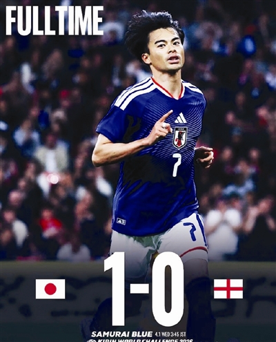 在北京时间昨天凌晨进行的国际友谊赛中,日本队凭借三笘薰的进球,以1比0力克英格兰队,队史首次击败对手。此役,英格兰队有包括凯恩、贝林厄姆、萨卡、赖斯在内的多名球员缺阵。