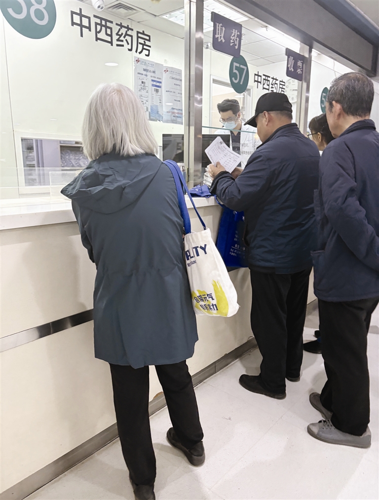 扫码、支付、出袋,一连串在年轻人看来较轻松的操作,对老年群体而言却步步是坎儿。有的老人看不清机器上的小字提示,有的摸不透扫码流程,有的压根不会用手机支付,只能抱着沉甸甸的药品手足无措,甚至只能无奈地将药品抱在怀里、夹在腋下,艰难穿梭在医院大厅。
