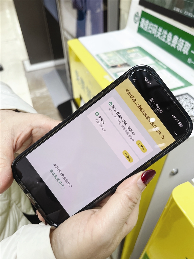 “领个袋子怎么还要进社群?我哪知道这是不是正规的。”一位女士在扫码后看到页面要求加入社群,当即表示担忧,最终选择手捧药品离开了。一位年轻市民则表示:“医院不给塑料袋了,这个环保袋能免费领,对我们年轻人来说挺方便的,起码解决了拿药没袋子装的问题。”