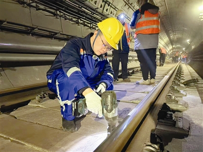 凌晨2时,记者跟着他来到道岔区,这是地铁轨道的“咽喉”,也是检修重点。“道岔引导列车转向,结构复杂,任何一个零件出问题,都可能导致列车停运。”张天宇蹲下身,逐一检查滑床板、尖轨、辙叉,用扭矩扳手检查螺栓松紧,每一个动作都精准规范。徒弟小王紧随其后记录数据,他耐心解答疑问,一边示范一边讲解,毫无保留地传经验。