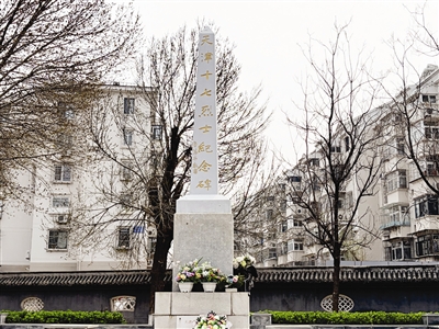 “这里游客不多,更多是市民路过参观,当他们问起到底是‘十五烈士’还是‘十七烈士’纪念碑时,我就会给他们讲解。这些烈士当年大多还是孩子,却为中国献出了生命。”82岁的李大爷在中山公园晨练几十年,见证了中山路和中山公园的变迁,他对公园的历史如数家珍,“原来这几座纪念碑在东北面,后来重新规划到了南边,方便大家参观和瞻仰。”清明节前夕,两座纪念碑前已经摆放了鲜花,“这应该是魏士毅后人送来的,前几天我在这晨练,看到几位年轻人在这里扫墓献花,应该是专程从外地赶来的。”