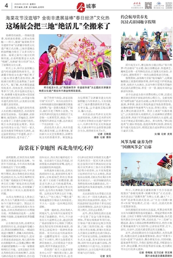 杨柳青的画韵、一得阁的墨香、桂顺斋的香甜、义聚永的佳酿……昨日,随着“海棠映芳序 非遗续华章”京津冀非物质文化遗产展正式启幕,三地非遗精品的独特魅力吸引了众多市民与游客。海棠之美与三地文化同频共振,在清明假期首日火热“吸睛”,为津城“春日经济”注入了浓厚的文化元素。