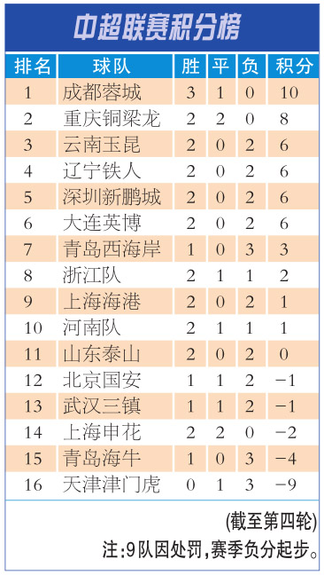 中超4轮战罢 重庆铜梁龙显露黑马本色