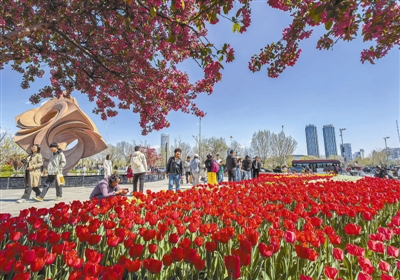 春日里,河西区友谊路旁“友谊之花”雕塑前,新种植的郁金香竞相开放。缤纷的色彩与雕塑相映成景,将街角扮靓,吸引市民驻足观赏、打卡留念,尽显津城春日生机。记者 吴迪 摄