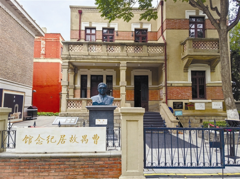 天津意式风情区,民主道23号两幢清幽的意式小楼静立街边。门前1.2米高的曹禺半身铜像目光深邃,凝视着往来的人潮。