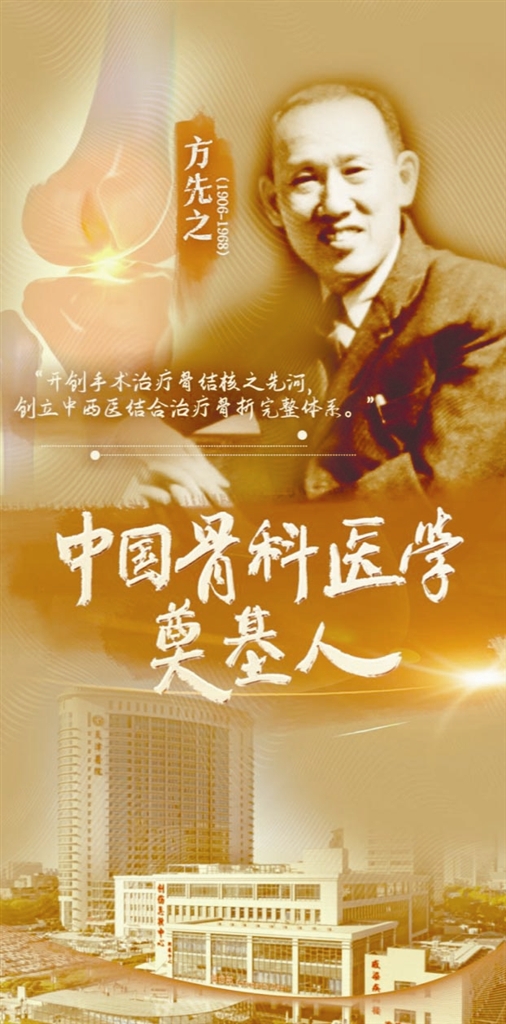 1958年,为响应“西医学中医”号召,学生尚天裕提出用中医“夹板固定、手法整复”治疗骨折的理念,不用开刀,还能让病人早点活动。方先之,这位顶尖的西医学者没有轻言否定,而是以科学精神亲自跟踪上百个病例,严谨复查。在确凿的疗效数据面前,他毅然支持这一“不动刀”的疗法,并与尚天裕合著《中西医结合治疗骨折》一书,归纳出“动静结合、内外兼治、筋骨并重、医患合作”四大原则,创立了完整的中西医结合治疗骨伤体系。自此,天津市天津医院成为中国中西医结合治疗骨伤的发源地。这一理念历经数十年临床检验,至今仍在骨科治疗中彰显着蓬勃的生命力。