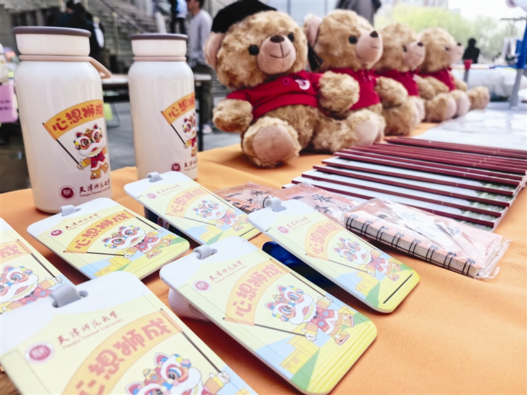 市集现场书香氤氲,创意涌动。福荫书店摊位前,店主刘毅热情地向学生推荐书籍:“我们特意选了适合年轻人品味的书,既要有颜值,又要有情绪价值。”他拿起一本小开本书籍,“封面漂亮还精致小巧,揣进口袋就能随时翻看。”他还带来了《天津传》等津味儿图书,“希望在天津读书的大学生通过阅读更了解天津、爱上天津。”刘毅说。