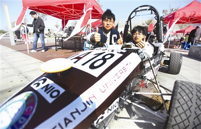 太雷广场上,学生社团活动同样热闹。“我们每年都会研发两辆方程式赛车。”天津大学北洋动力车队成员约提库尔指着展示的两辆赛车介绍,“这辆油车和那辆无人驾驶赛车都获得了全国奖项。”旁边海教园南开学校的学生按下连拍快门,“我一直都对赛车感兴趣,亲眼看到非常震撼,而且研发团队几乎都是本科生,让我肃然起敬。”