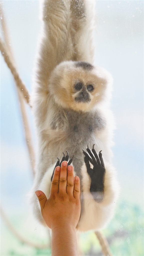 金珠的伴侣巴拉克也没闲着,俩猩猩上演“互藏食物”的趣味戏码。金珠刚拿到一块苹果,巴拉克就凑过来“抢”,金珠赶紧把食物藏进怀里,巴拉克又从背后“偷袭”,俩猩猩你追我赶、打打闹闹,像极了小情侣拌嘴,萌翻全场。带着女儿来打卡的张女士举着手机不停拍照,女儿更是趴在边上不肯走。