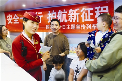 昨日上午,国铁北京局天津客运段在北京丰台开往天津的D51次动集列车上开展“安全一路行 护航新征程”主题宣传活动,把国家安全和铁路安全知识送到旅客身边。活动中,列车工作人员通过现场宣讲、安全知识互动问答、发放宣传卡片等形式,向旅客普及国家安全常识、列车禁限带物品规定及出行安全注意事项。现场旅客积极参与互动,在轻松氛围中学习安全知识、增强安全意识。