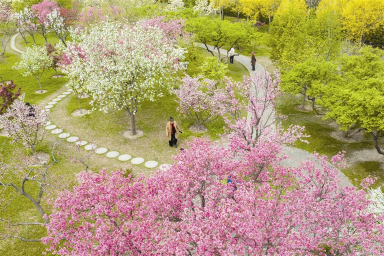 4月中旬,天津经开区泰达揽春园迎最佳赏花期并向市民开放,400余种春花盛放,近600株海棠姹紫嫣红。这里免费开放,兼具观赏与科普价值,是滨城春日踏青打卡的热门之选。记者 赵建伟 摄