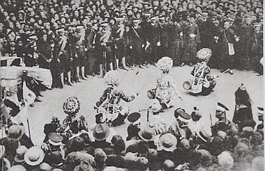 《中南报》1936年4月8日(农历三月十七)载:“津市‘皇会’改变游艺会后,昨日为第一日,津市马路及天后宫内外,男女游人如堵,市当局并准北平中国摄影公司专利拍摄新闻影片。该公司已派张玉亭来津,昨日已开始摄照,最近期将先于平津各电影院开演云。”也就是说,在皇会筹委会的努力下,在市府的默许下,在天津老百姓(民间花会)自发参与下,“一切照旧”,并取得了轰动一时的社会影响。这场皇会令天津的市场得以短暂繁荣,令动荡时局带给人们的不安与焦虑得到瞬间释放。毫无疑问,这期间最出彩的还是来到天后宫参加皇会的各道民间花会队伍。